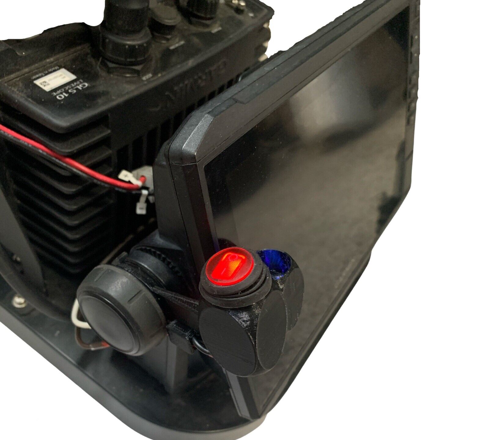 Custom GLOW CUP For Garmin 93sv And 73cv Models! This light-weight simple design installs directly to the graph side screws and can either be plugged into the Garmin Accessory power ports on your ice bundle, or have spade clips added (not included).