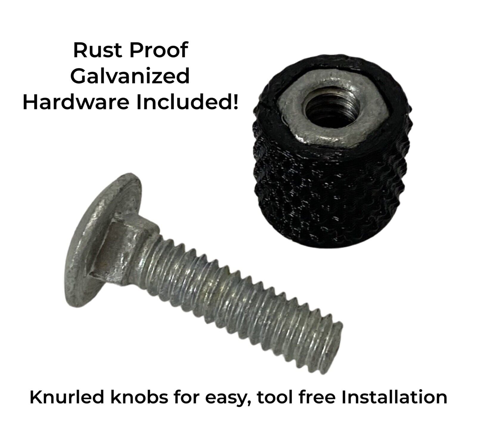 Tool free install with galvanized hardware, so rusting will never be an issue.